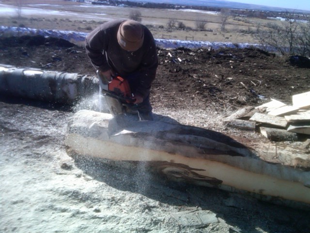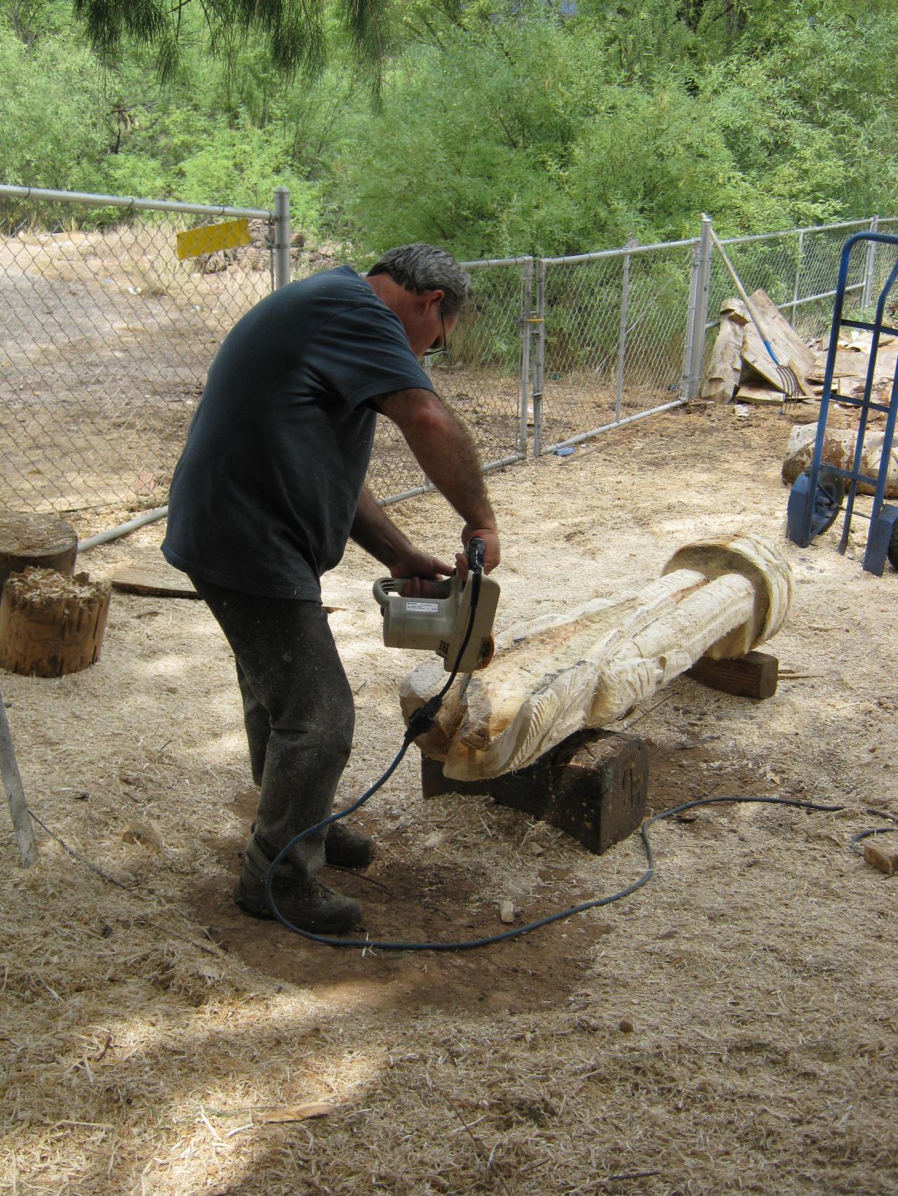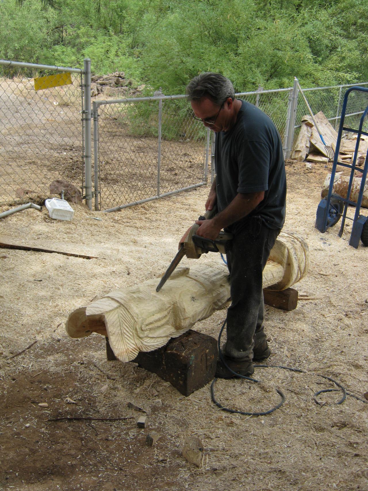 Here you'll find Frank chain sawing and doing chisel work on his carvings.